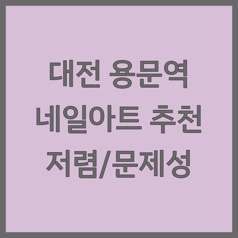 대전 서구 괴정동과 용문역 인근에서 합리적인 가격으로 고퀄리티 시술을 제공하는 네일샵을 찾으시나요? 실제 방문자 리뷰와 시술 특징을 바탕으로 선별한 최고의 네일샵 정보를 지금 바로 확인해 보세요.