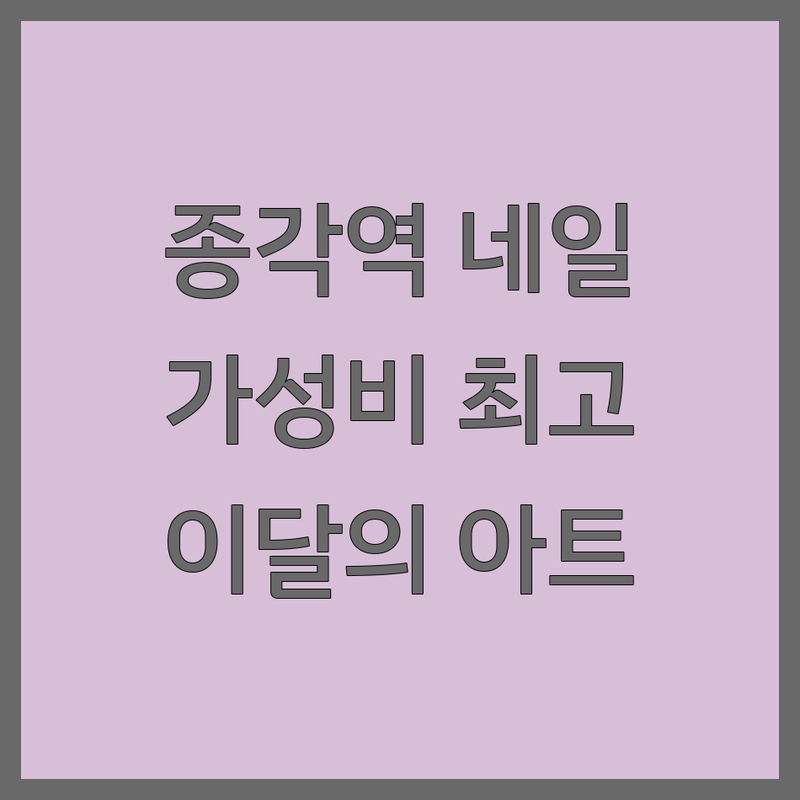 | 찰스네일 | 종각역 12번 출구 (도보 1분) | 빠른 손, 꼼꼼한 시술, 스와로브스키 & 파츠 1+1 | 매일 11:00 – 21:00 (일요일 정기휴무) | 손젤 35,000원 / 연장 50,000원 |